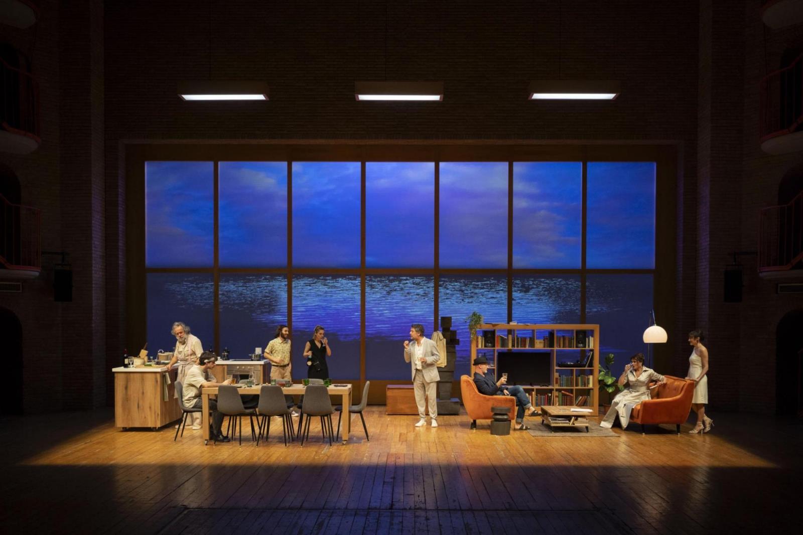 Non è autofinzione, maniera teatrale spesso erroneamente attribuita al regista, che anzi l’ha voluta, non riconoscendovisi, deformare parodisticamente nella sua precedente regia HEDDA.GABLER. come una pistola carica. Inoltre, questa volta, Ferracchiati tiene per sé solo il ruolo di regista, senza calcare la scena, immaginando i personaggi di Čechov nella nostra contemporaneità, manipolando, scomponendo, riscrivendo scene e dialoghi intorno a due fuochi tematici: il rapporto madre e figlio e la ricerca, tormentata e inesausta, di un riconoscimento, una sorta di autorizzazione a esistere che discende, inesorabilmente, dall’altrui sguardo. La attende, anche nell’originale, Kostja (qui il Figlio) dalla madre e da Nina, ma è un anelito che attraversa tutti e rende Come tremano le cose riflesse nell’acqua uno spettacolo autenticamente corale, costantemente riflesso nelle acque, ora placide ora increspate dalla corrente narrativa, del lago, sulle cui rive si intrecciano le vite dei personaggi.