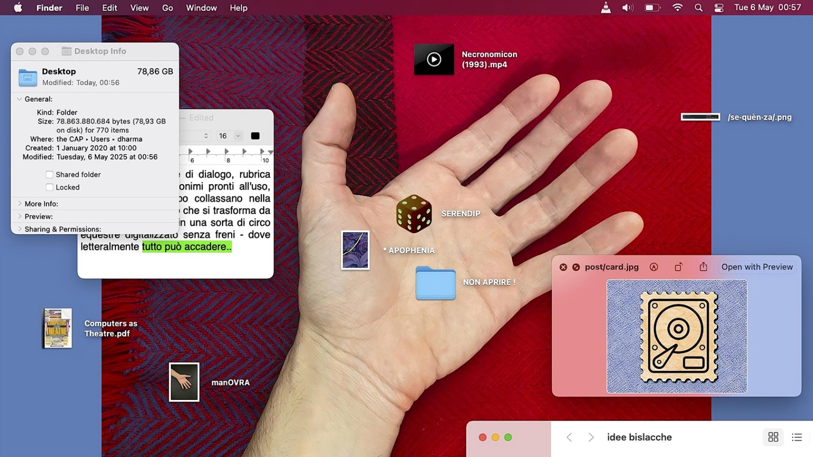 Sono 4 i progetti artistici che verranno presentati. Spooky Internet Storie per non dormire. Buonanotte della marchigiana Mara Oscar Cassiani esplora le leggende digitali nate sul web come forma contemporanea di oralità collettiva, trasformando moderne donne over 50 in “cantastorie digitali”; Molka di Benedetta Pigoni, per la regia di Giammarco Pignatiello, performance interattiva ispirata alle spy cams pornografiche coreane e a più prossimi fatti di cronaca accaduti in Italia, mette in discussione il confine tra osservazione e violazione, esplorando il rapporto tra corpo, privacy e immagine digitale; Screenvestigation di Albert Figurt (all’anagrafe Alberto Angelini anche lui marchigiano) trasforma il desktop (o la sua assenza) e le abitudini digitali degli utenti in veri e propri spazi e materiali performativi; Eburnea di Boris Pimenov è performance interattiva durante la quale il pubblico diventa co-creatore del destino di Alice, un’intelligenza artificiale intrappolata in un istituto immaginario.