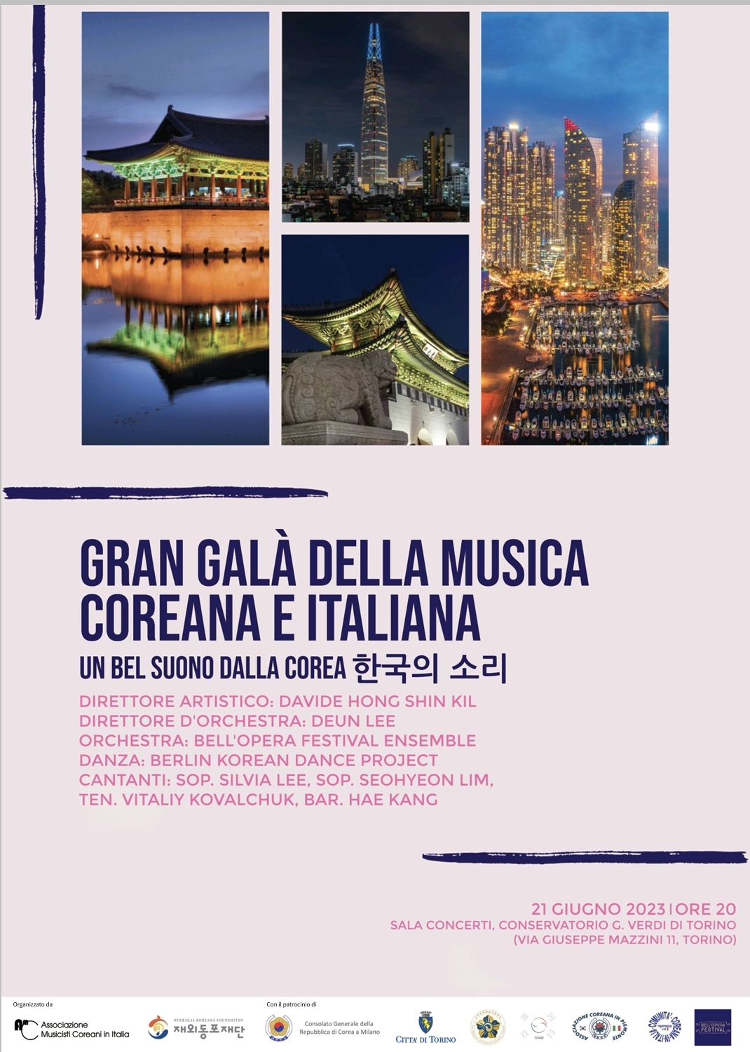 Nella Sala Concerti del Conservatorio Giuseppe Verdi di Torino, si è tenuto mercoledì 21 giugno il “Gran Galà della Musica Coreana e Italiana. Un bel suono dalla Corea”, organizzato dall’Associazione Musicisti Coreani in Italia con il patrocinio dell’Overseas Koreans Service, del Consolato Generale della Repubblica di Corea e del Comune di Torino